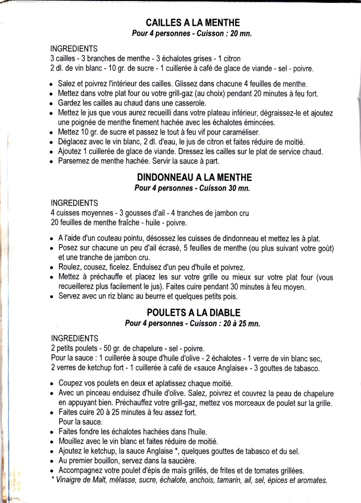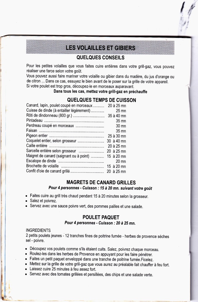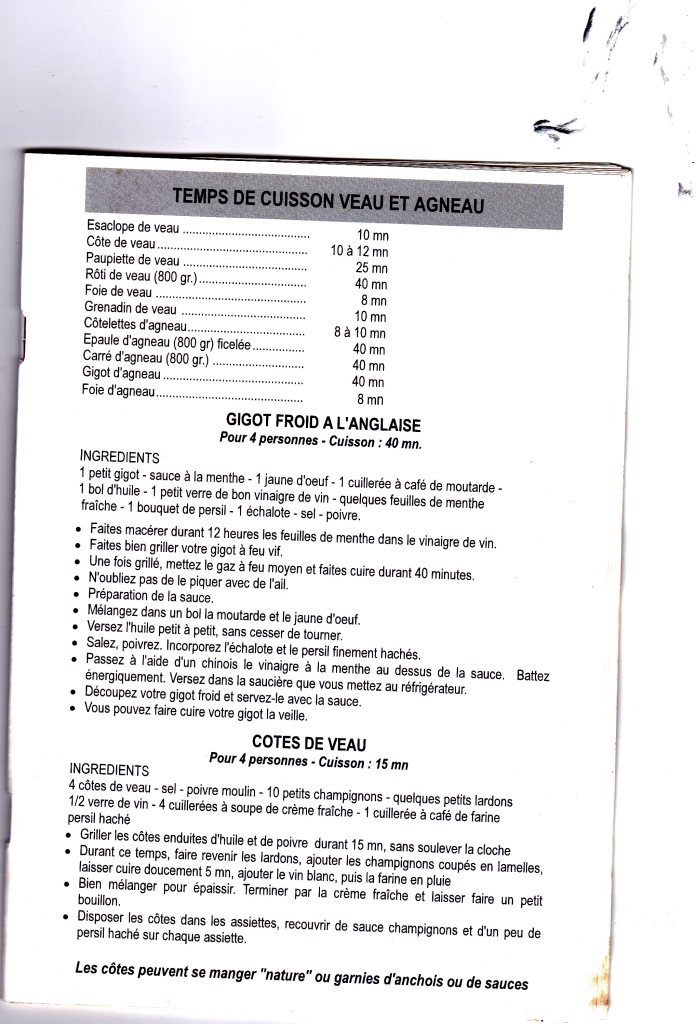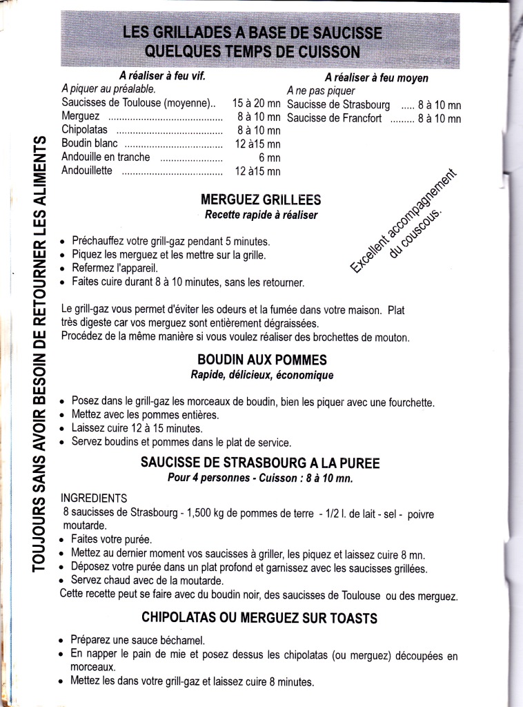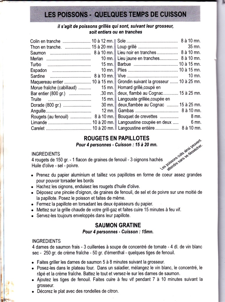 Temps de cuisson (Selon l’intensité de vos feux, ne tenant pas compte de découvertes opérées)